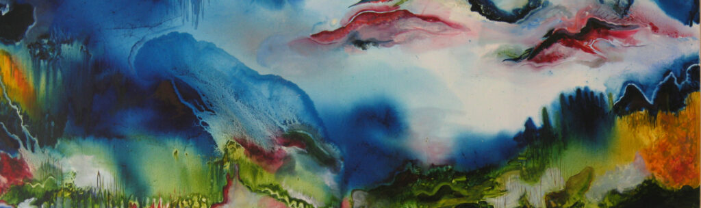 Vrolijke abstracte schilderijen. Dat is heerlijk bezig zijn. Extra goed kijken! Vorm, kleur en de manier waarop je je verf aanbrengt, het is allemaal belangrijk. Tijdens het proces wil ik nog wel eens iets aanpassen, maar in mijn hoofd heb ik toch al wel een plan van aanpak. Regelmatig wordt het een half-abstract. Er is vaak wel iets te herkennen waar ik het schilderij omheen “bouw”.